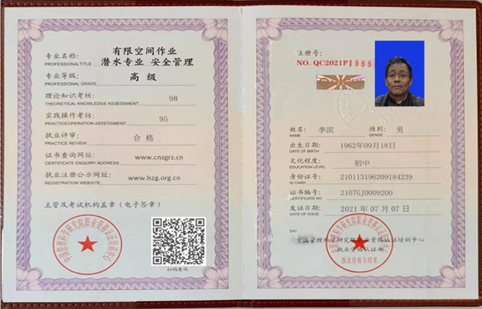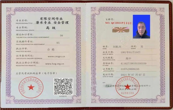 潛水專業(yè) 安全管理高級(jí)證書